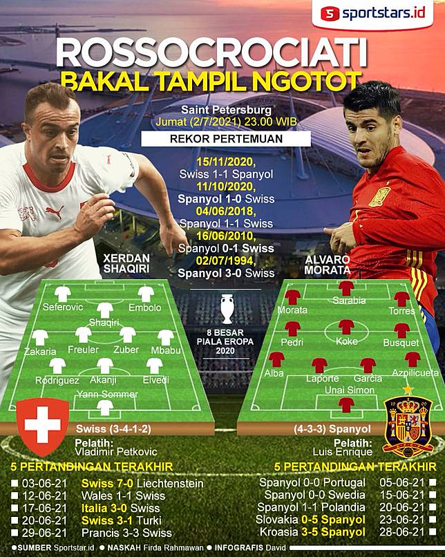 Skor Swiss Vs Spanyol: Prediksi skor laga swiss vs spanyol di perempatfinal piala eropa 2020 yang berlangsung di stadion krestovsky, saint petersburg, rusia pada jumat 2 juli pukul 23.00 wib dikeluarkan laman statistik whoscored.